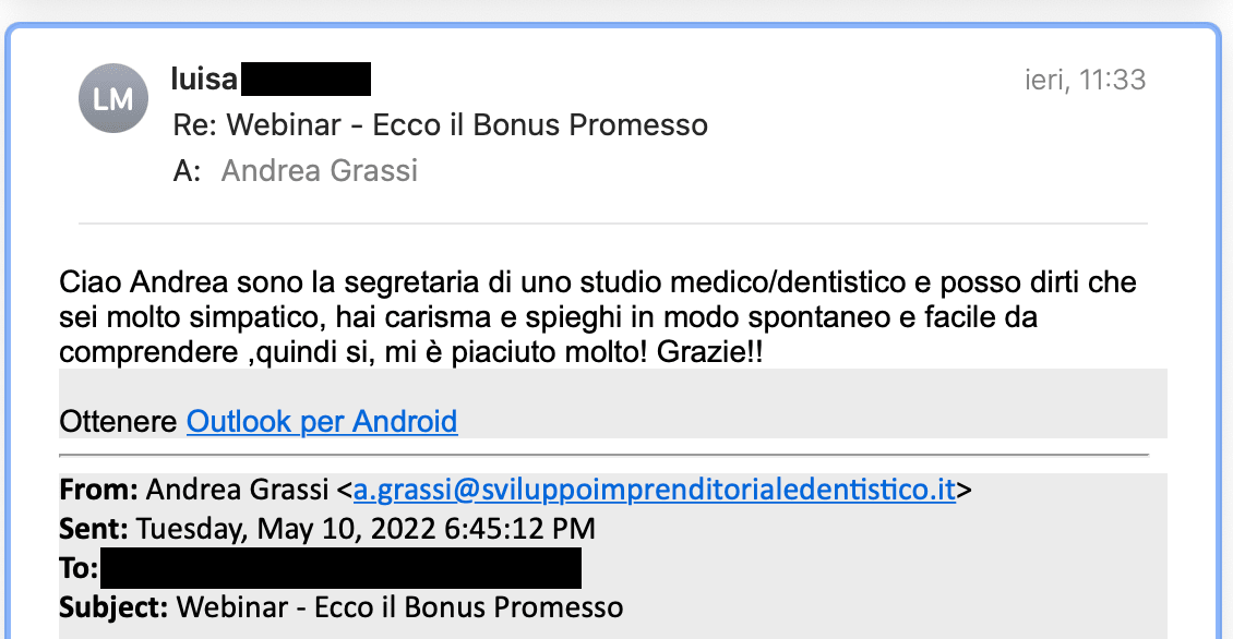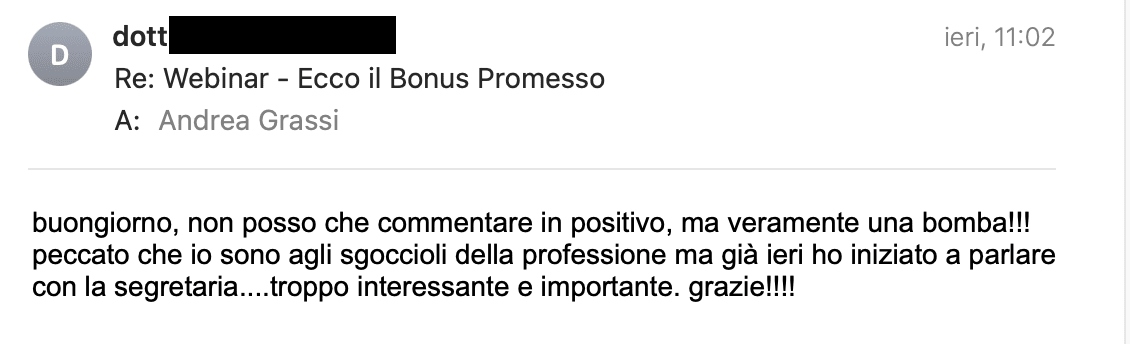 Nella Guida che ti sto per presentare scoprirai il Protocollo per un’Esperienza di Prima Visita Memorabile che Andrea Grassi ha ideato, testato e perfezionato negli ultimi 12 anni insieme ai Dental Business Coach di Accademia in oltre 1000 Studi Dentistici di piccole, medie e grandi dimensioni del Nord, Centro e Sud Italia.
